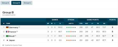 奥运会男篮小组赛结束,净胜分第一是美国,第二是哪支球队?德国:没错,正是在下(+47)!来看看德国男篮的小组赛表现:97-77大胜日本,86-73战胜巴西,85-71击败法国。分差最小的一场也有13分,可以说没遇到阻力。