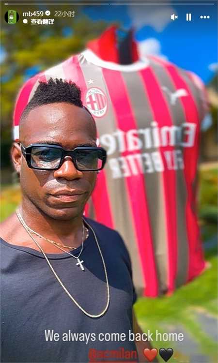 巴洛特利晒出了自己回到了米兰内洛训练基地的照片,并配文:“离乡的游子总是会重回故乡”。