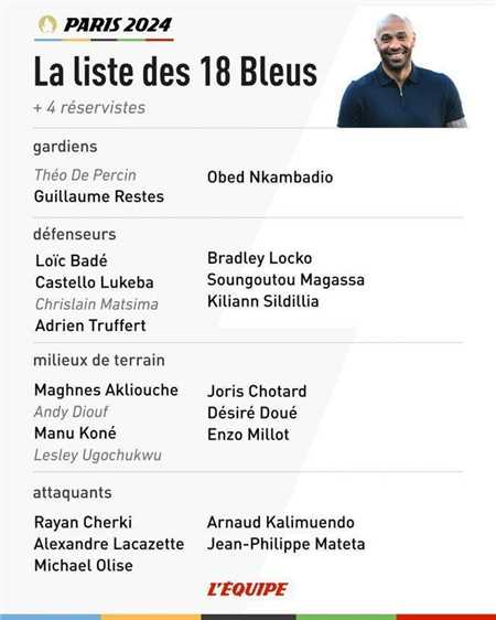 本届奥运会,法国国奥队的主帅是此前随比利时国家队拿下世界杯第三名的助理教练,法国足坛名宿亨利。尽管在球员时代拿到过世界杯冠军和亚军,但这位法国足坛曾经的顶级巨星似乎也没有完成“脱下球鞋,穿上皮鞋”的转变。在刚刚结束的热身赛中,拥有拉卡泽特等超龄球员的法国国奥队爆冷1-1被日本国奥队逼平,而日本国奥队阵中没有任何一位超龄球员。法国队如此表现,让球迷对于东道主在本届奥运会上的表现捏了一把汗。