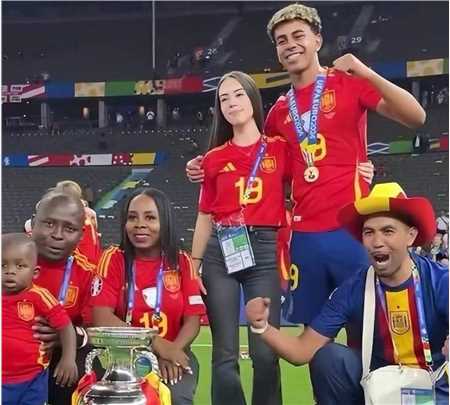 不过夺冠庆典上,亚马尔一家人中最显眼的还是亚马尔的女友亚历克斯帕迪拉,肤色白皙的她在亚马尔一家人中显得相当突出。据悉亚历克斯是和亚马尔的家人一起来到德国,并住在同一个地方,显然和亚马尔的家人相处的不错。