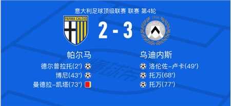 北京时间9月17日帕尔马vs乌迪内斯,托万得到全场最高的9.6分,曼德拉-凯塔得到全场最低的4.7分