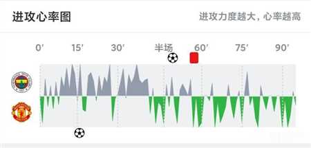 在欧联杯联赛阶段第三轮的比赛中,曼联客场1-1战平穆里尼奥执教的费内巴切。赛后的进攻心率图显示,在穆帅第57分钟因为抗议判罚被直接出示红牌罚下后,曼联就全面处于攻势,尽管最终他们未能再次取得进球。
