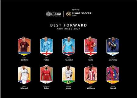 北京时间11月14日,环球足球奖公布了今年最佳前锋的候选名单,其中,多夫比克、福登、哈兰德、凯恩、劳塔罗、姆巴佩、萨拉赫、维尼修斯、亚马尔、尼科-威廉斯均在列。