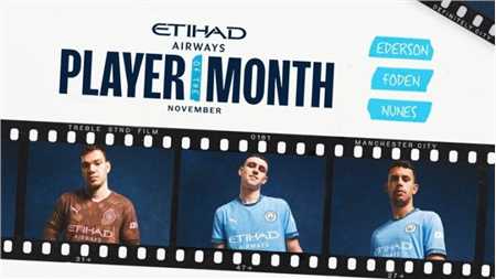 曼城官方公布了球队11月最佳球员候选,分别是埃德森、福登和马特乌斯-努内斯。