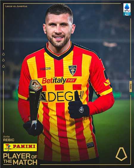 官方消息,雷比奇当选莱切对阵尤文图斯一役全场最佳。