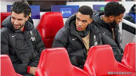 利物浦右后卫特伦特·亚历山大-阿诺德在比赛前坐在替补席上