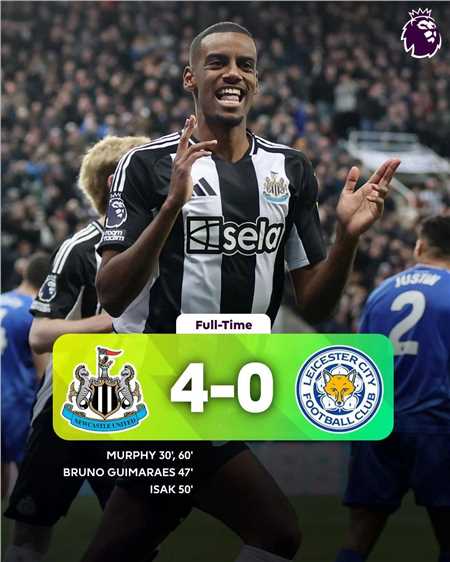 英超第16轮,莱斯特城客场0-4惨败纽卡斯尔,墨菲梅开二度,吉马良斯、伊萨克进球,送给了范尼执教英超的首场败局。本场比赛过后,莱斯特城在积分榜上排名滑落至第16位,仅比降级区的伊镇多2分,球队的保级形势依旧非常严峻。