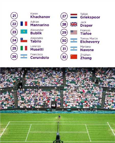 自那以后,温网便取消了颇有争议的草地排名,目前温网的种子排位基本与世界排名一致。在前32的球员中,只有本周排在no.26的捷克一哥莱赫卡退赛,因此创造了我国男单最佳排名纪录no.33的张之臻,也正式成为了32号种子。这也是中国大陆男子球员第一位在大满贯拿到种子排位。