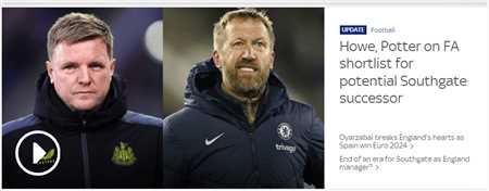 北京时间7月16日,据英国《天空体育》报道,为了预防索斯盖特辞去英格兰队主教练一职,英足总已经提前列出了一份英格兰主教练候选人大名单,其中包括现任纽卡斯尔主教练埃迪·豪和前切尔西主教练格雷厄姆·波特。