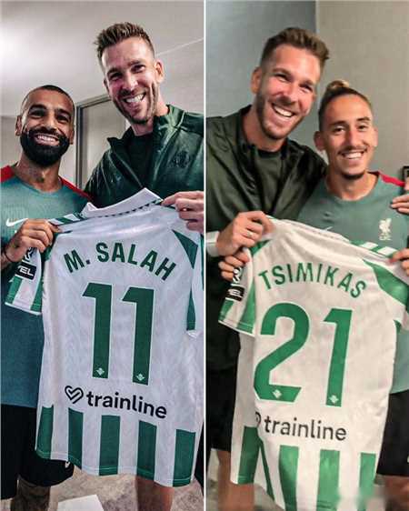 赛前一天,阿德里安造访了利物浦下榻酒店,并向萨拉赫、齐米卡斯两位前队友赠送了印有他们名字的皇家贝蒂斯球衣。